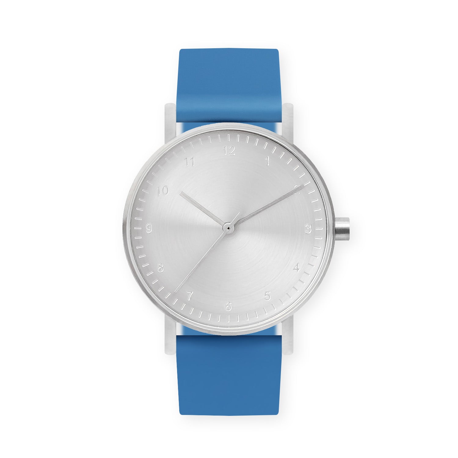 B60 Watch, Silver Case, Silver Dial, Silicone Strap - 0006-Blue