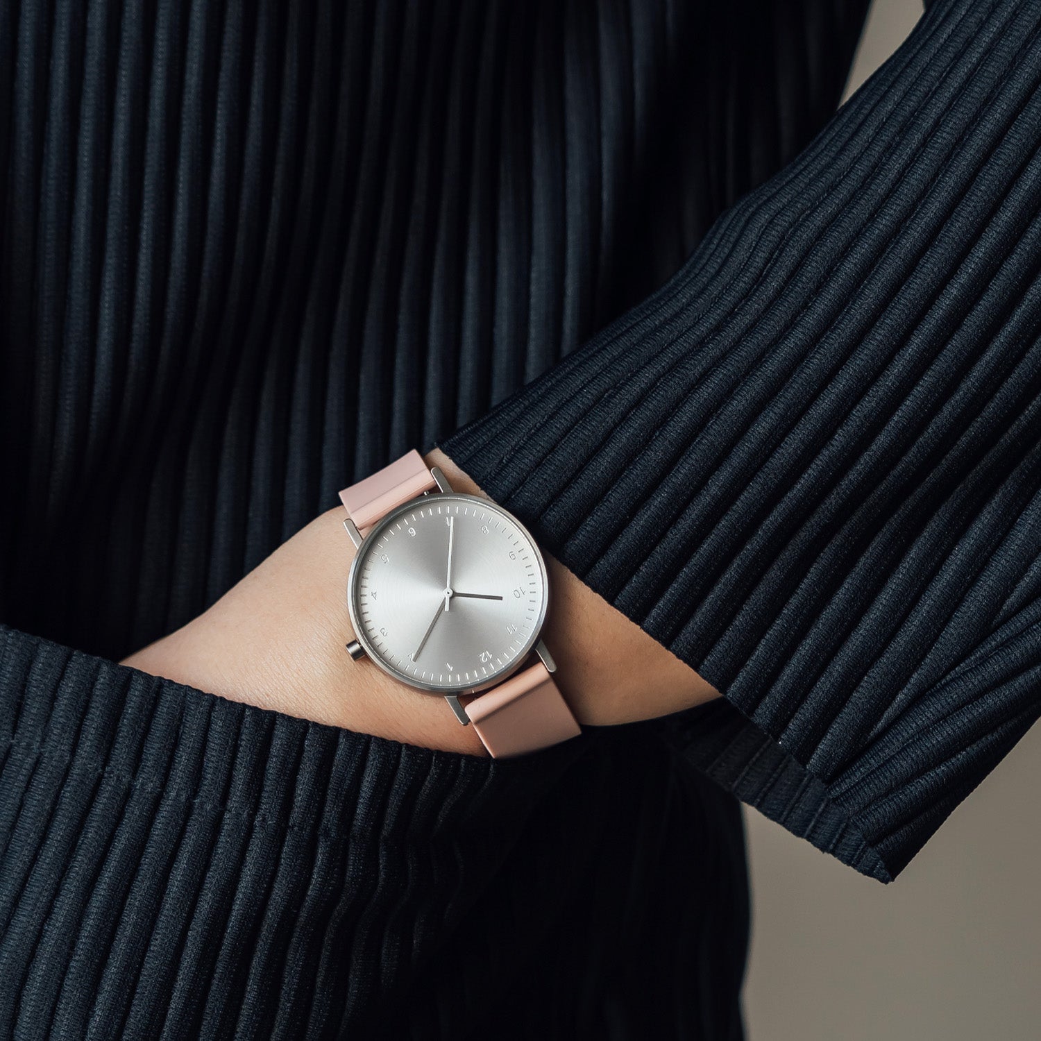 B60 Watch, Silver Case, Silver Dial, Silicone Strap - 0007-Nude Pink